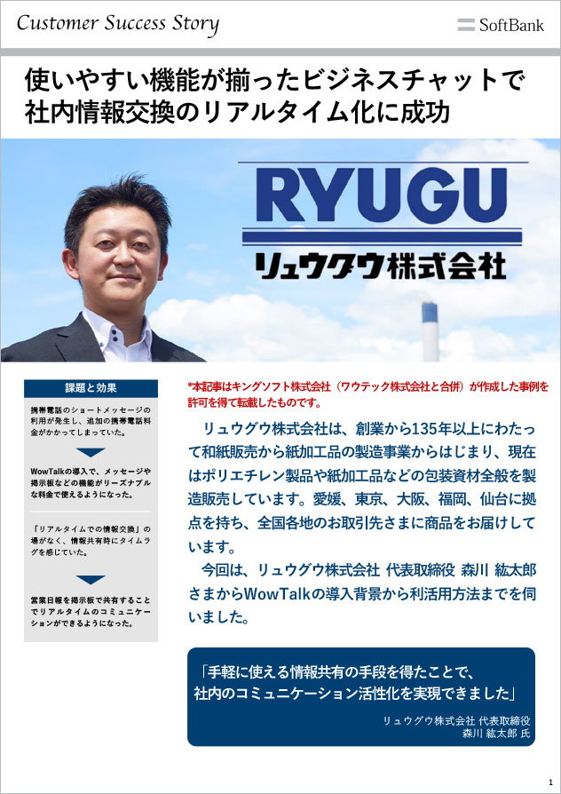 今回は、リュウグウ株式会社 代表取締役 森川紘太郎さまからWowTalkの導入背景から利活用方法までを伺いました。