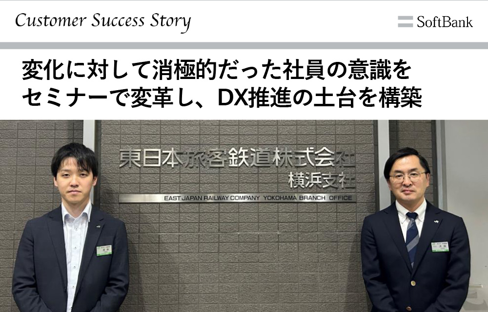 東日本旅客鉄道株式会社では、鉄道による輸送サービスだけでなく、不動産やITなど新しい価値を持つビジネスの創出も模索しています。神奈川県と静岡県の伊豆エリアを受け持つ東日本旅客鉄道株式会社 横浜支社では、全社に先立ってDXを推進していくことを宣言しました。しかし、さまざまな層の社員が変化に対して抵抗感を持ち、前例踏襲的な思考を持っていることも垣間見え、デジタル化を進める際の高い障壁となっていることが分かりました。そこで、社員の意識を変えるべくDX推進のマインド醸成をゴールとしたセミナーの活用を決定。それにより、DXに対する社員の姿勢を前向きなものに変えることができました。