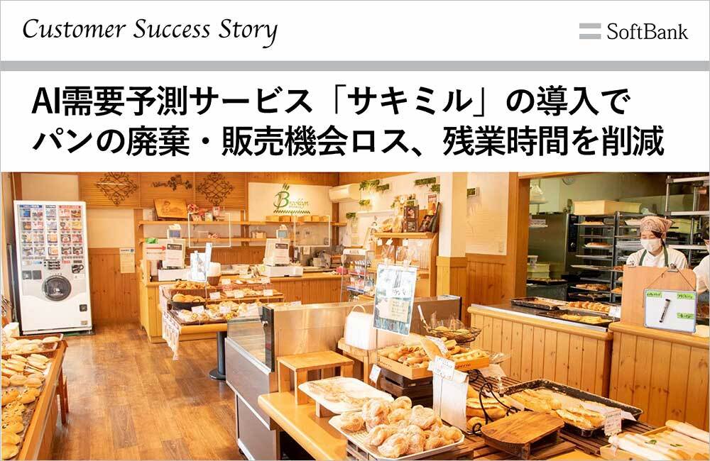 同社は、パンの需要予測を製造リーダーの経験と勘に依存していましたが精度のブレが大きく、パンの廃棄ロスに繋がっていることが課題でした。そこで、店舗・人流・気象データを元にAIで需要を予測するサービス「サキミル」を導入しました。データに基づいた需要予測を導入することで、廃棄ロスと販売機会ロス削減に加え、残業時間や人件費の削減を進めています。