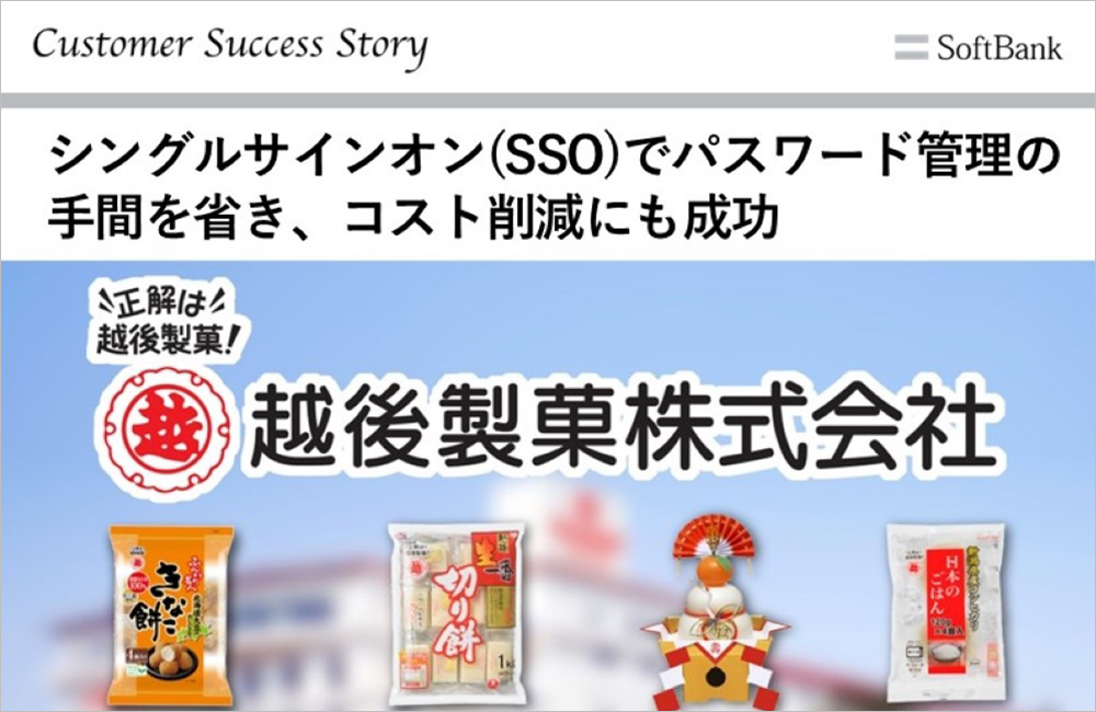 新潟県に拠点を置き、米を材料とした食品の製造販売を行っている越後製菓株式会社(以下:越後製菓)。以前はスケジュールをローカルで管理していましたが、機器の更新を機にクラウドサービスのサイボウズに切り替えました。その際、管理に伴うセキュリティ対策としてビジネス・コンシェル デバイスマネジメント(BCDM)のオプションサービス「シングルサインオン(SSO)無制限」を採用。クラウドサービス数が増えてもコストが抑えられるSSO無制限プランを選択した事で、セキュリティの強化とパスワード入力の手間を省いたことによる利便性の向上を実現し、年間約40万円のコスト削減にもつながりました。