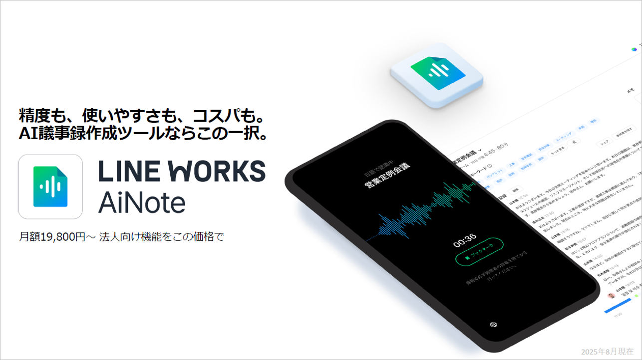 精度も、使いやすさも、コスパも。AI議事録作成ツールならこの一択。LINE WORKS AiNote