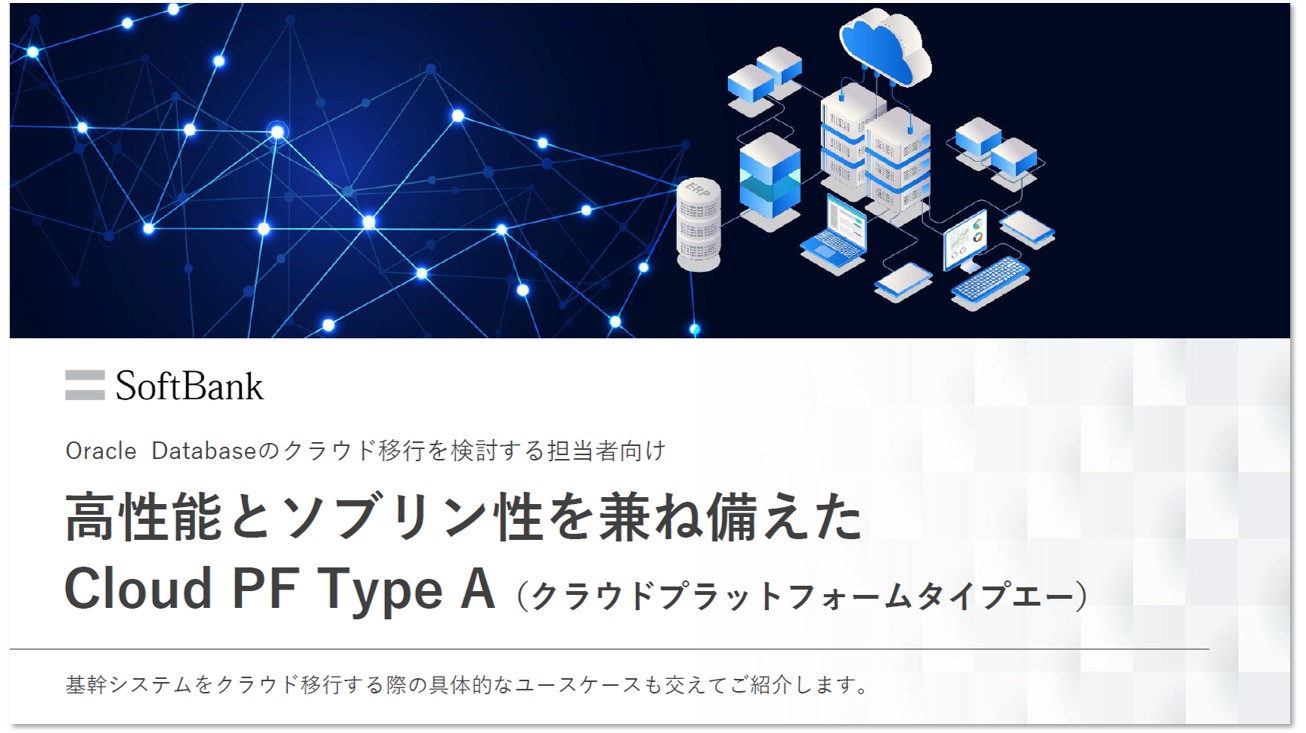 Cloud PF Type A は、ソフトバンクの東西データセンターにて構築された高性能かつソブリン性を備えたクラウド基盤です。Oracle Databaseを中心とした基幹システムのクラウド移行を支援し、AI時代に最適なデータ活用環境を実現します。本資料では、サービスの仕組みから基幹システム移行やAWS連携など、実際のユースケースを通じてクラウド活用の具体像を分かりやすく説明します。