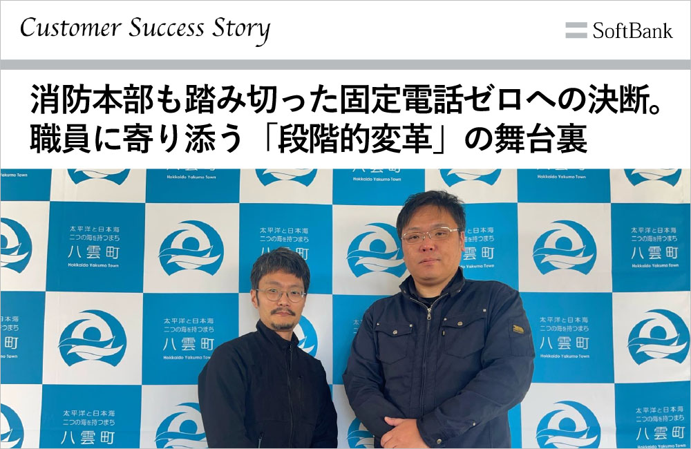北海道八雲町は、数年後の新庁舎移転とDX推進を見据え、消防本部を含む全拠点でクラウドPBXとFMC※1を融合したサービス「ConnecTalk」の導入と、全職員へiPhone の貸与を行いました。背景には、既存設備の老朽化や「固定電話を使ったことがない」若手職員の増加、フリーアドレス化への課題がありました。音質重視でサービス選定をすることで、町民への影響もなくスムーズな移行に成功。あえて庁舎移転前に導入することで、職員のデジタル順応期間を確保する「段階的な変革」を実践し、選挙事務での劇的な効率化や場所にとらわれない働き方を実現しました。