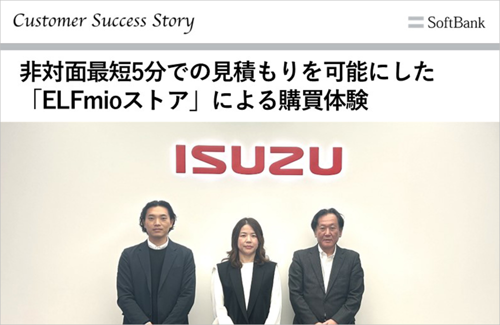 いすゞ自動車株式会社(以下、いすゞ自動車)は、普通免許で運転可能な小型トラック「エルフミオ」の発売に合わせ、車業界では先駆的なオンライン購買システム「ELFmioストア」を立ち上げました。複雑な仕様選定や見積作成をデジタル化することで、これまで接点のなかった顧客層とのファーストコンタクトを実現しています。ソフトバンクによる集客からシステム構築、運用後のデジタルマーケティングの支援を通じ、いすゞ自動車は商用車販売の新たなスタンダードの確立を目指しています。