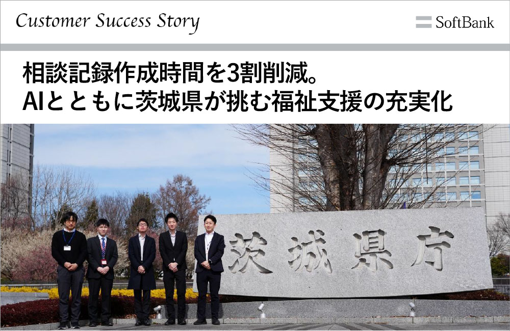 茨城県では、福祉相談の現場において相談内容の複雑化による業務負荷の増大や、紙資料の持ち出しに伴う情報漏えいリスクへの懸念がありました。この状況を改善するため、同県はGoogle Workspace 環境から利用できる生成AI(Gemini /NotebookLM Enterprise )とiPad を導入しました。これによって、端末にデータを残さないセキュアな環境を構築するとともに、AIによる関連情報の有効活用が可能となり、さらに音声からの記録作成の自動化で、相談記録作成時間を3割程度削減しました。AIを「パートナー」として活用しつつ最終判断は人間が行う運用を徹底し、創出された時間を県民への手厚い対面支援に充て、行政サービスの質的向上につなげています。