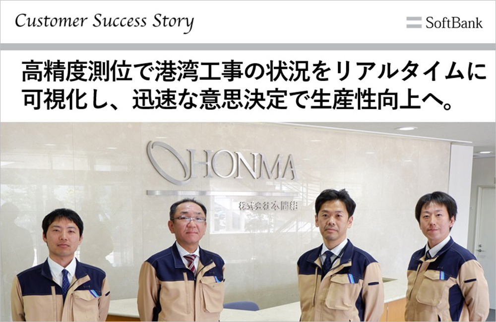 株式会社本間組は、海洋土木・陸上土木・建築を柱とする総合建設会社です。海洋土木における港湾工事では、作業船の位置確認や施工範囲の把握が難しく、海中に設置した竹や陸上からの測量による位置把握、および関係者間での情報共有に課題がありました。そこで同社は高精度測位サービス「ichimill」を導入し、3次元クラウドプラットフォーム「KOLC+(コルクプラス)」と連携。作業船の位置を正確に把握し、関係者間でのリアルタイムな情報共有を可能とするデジタルツインを構築。施工管理における大幅な生産性向上を実現しました。